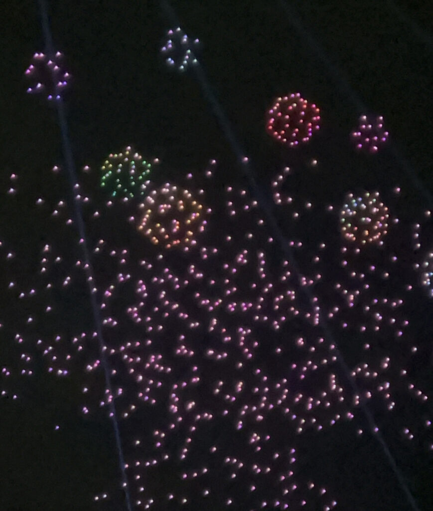 その代わりに、ドローンショーはいい場所で見れました!美しい~。最新技術だー。
